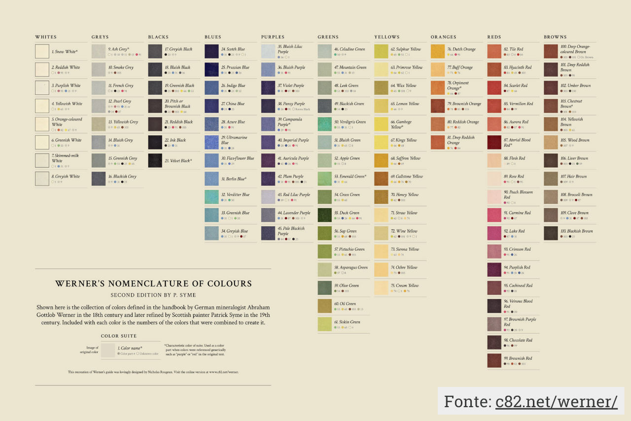 Il verde richiama i pigmenti della natura e ci riporta a "La Nomenclatura dei colori di Werner": un libro storico, pubblicato nel 1814, quando identificare i colori con nomi universali era ancora piuttosto complicato. L'opera catalogava con minuziosità i colori e ci spiegava dove poter ritrovare ogni sfumatura nel mondo vegetale.