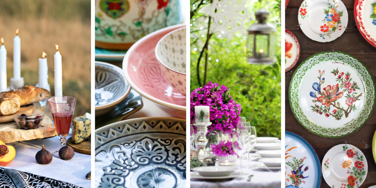 In negozi e mercatini di brocante si possono acquistare incantevoli servizi di piatti e bicchieri, spesso diversi tra loro, che daranno un tocco originalissimo alla nostra tavola anche grazie ad accostamenti fantasiosi.