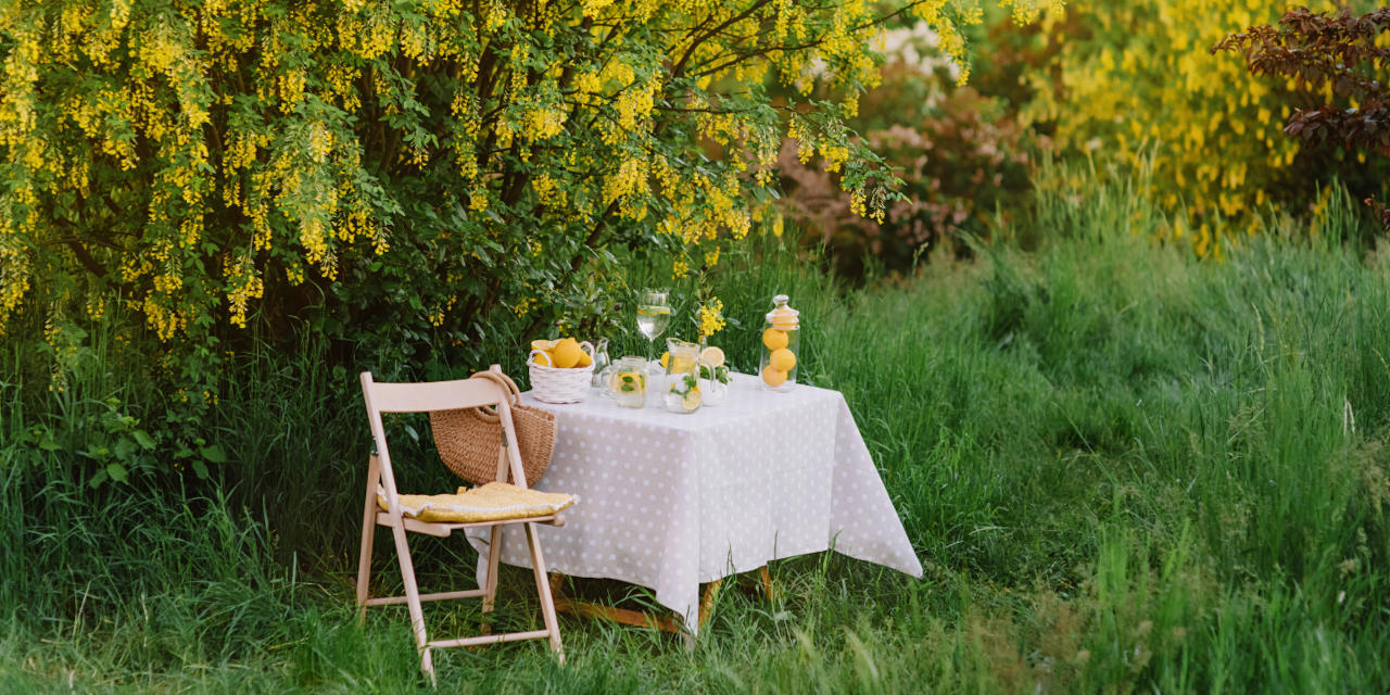 Provate a immaginare di godervi un aperitivo apparecchiato nel contesto di una una vegetazione lussureggiante: perché non cogliere la flora nella sua spontaneità ed esaltarne i colori?