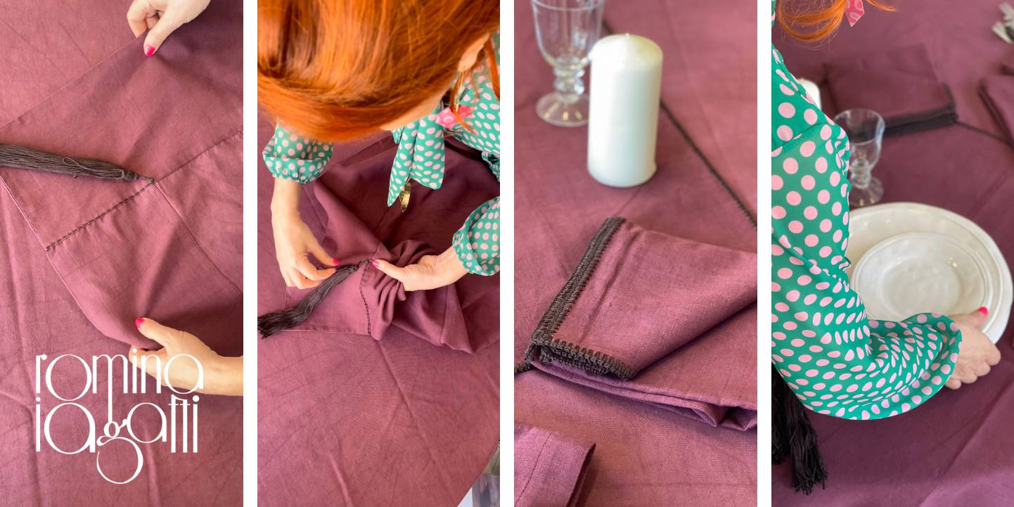 L'occasione si è presentata grazie al tavolo oversize di Federica: mancava una tovaglia adatta a valorizzarlo. Ne serviva una che fosse un pezzo unico, irriproducibile, che potesse raccontare una storia personale. Era finalmente arrivato il momento di aprire il baule di nonna Nina…