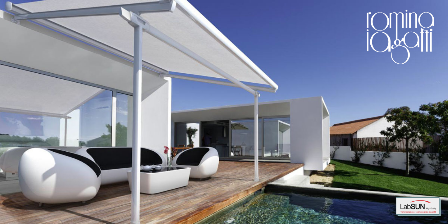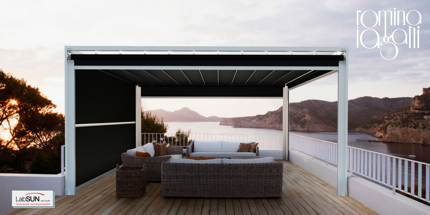Usata per ambienti molto grandi come lastrici solari, giardini e terrazzi, è una struttura fissa composta da pilastri e una travatura ancorata a terra e su una parete. Il telo può aprirsi a pacchetto, passare fra le travi oppure tramite un sistema di schermatura a rullo motorizzato, offrendo quindi molteplici possibilità in base al contesto.