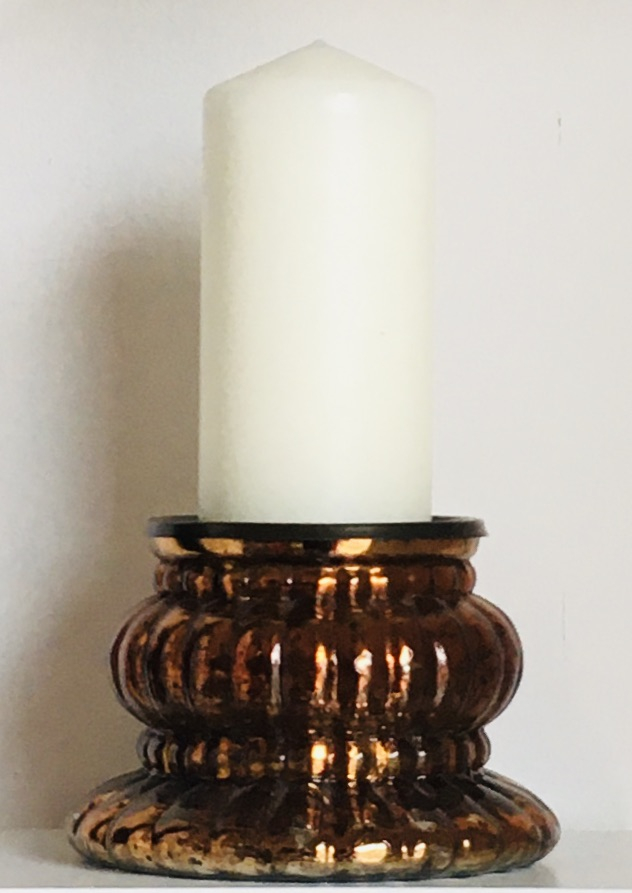 Candelabro in vetro colore bronzo anticato. La candela può avere un diametro di 8 cm circa.