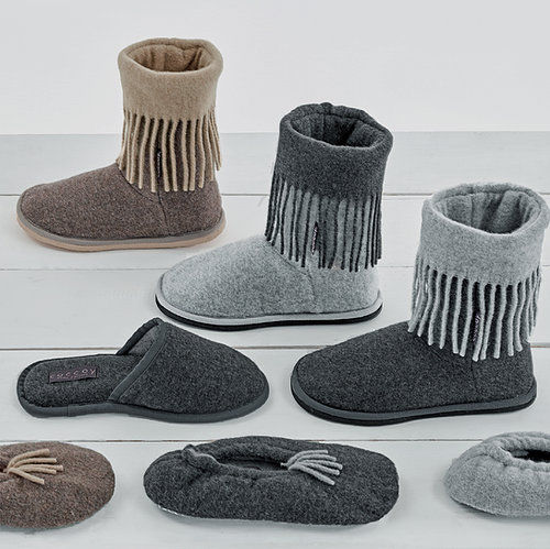 Calda ed elegante ciabatta con tomaia e sottopiede in doppio strato di lana merino. La ballerina, con suola in tessuto antiscivolo e frange reversibili, è una calzatura confortevole, avvolgente e raffinata. Ideale da usare in casa e perfetta anche come idea-regalo.